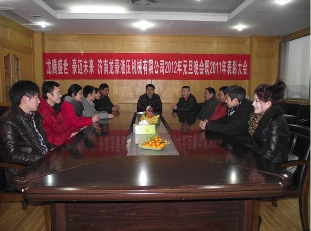 龍騰盛世,豪邁未來,濟南龍豪液壓機械設(shè)備有限公司于2011年12月31日于公司總部召開了2011年表彰大會,同時也為慶祝2012年元旦晚會,首先,公司負責(zé)人張總及廠領(lǐng)導(dǎo)的蒞臨公司在年底召開的年終總結(jié)大會,宏觀的總結(jié)了在過去的2011年的工作、業(yè)績情況以及在未來的2012年里的奮斗目標(biāo)和公司的發(fā)展方向。公司銷售部負責(zé)人也就在2011年的銷售狀況和工作內(nèi)容進行了詳細的分析和具體的數(shù)據(jù)統(tǒng)計,也為新一年的銷售情況制定目標(biāo)和銷售項目;廠里技術(shù)部負責(zé)人總結(jié)現(xiàn)有的技術(shù)基礎(chǔ),為明年的技術(shù)創(chuàng)新和改革而努力;生產(chǎn)部負責(zé)人也進行了總結(jié)性的發(fā)言,積極配合銷售部的工作,做銷售部堅實的后盾。此外,公司領(lǐng)導(dǎo)也對優(yōu)秀員工進行表彰,激勵員工為下一年的工作繼續(xù)努力,更創(chuàng)輝煌!