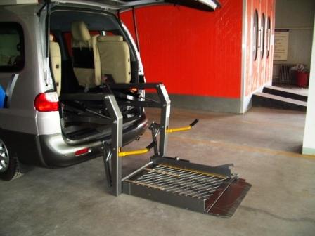 (1)、在使用輪椅升降機(jī)前,車(chē)輛必須停駛在平坦的路面上,注意不要停靠在斜坡上。
