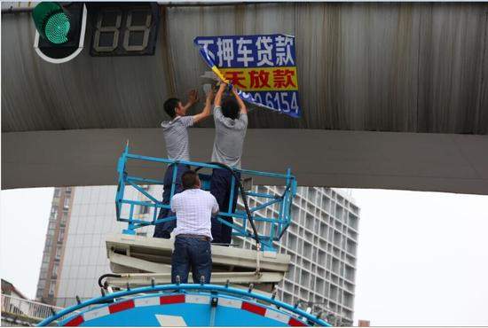 目測(cè)人行道過(guò)街天橋橋身垂直距離地面8米,100cm*80cm見(jiàn)方的藍(lán)色 “牛皮鮮”上印著車(chē)貸廣告。關(guān)注到這些廣告的市民都在猜:“這么高的天橋,牛皮蘚是么樣貼上去的?”據(jù)青山城管“三亂”整治專班負(fù)責(zé)人介紹,友誼大道兩座天橋東南西北四個(gè)方向的紅綠燈旁均被貼上了同一內(nèi)容的“牛皮癬”,應(yīng)該是前天晚上(11日)干的,估計(jì)有兩種方式張貼:一是借助比較高的車(chē)身站立進(jìn)行,這需要大型車(chē)輛配合;二是腰系安全帶從橋面懸垂下去,這很簡(jiǎn)單,但是很危險(xiǎn)。不管是怎么貼上去的,只要發(fā)現(xiàn)一處,就清理一處,這點(diǎn)事難不倒我們。有困難找龍豪升降機(jī),除了及時(shí)清理外,還將對(duì)當(dāng)事人展開(kāi)調(diào)查,依法進(jìn)行處置。