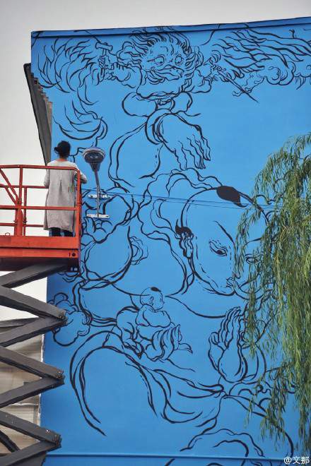 第一次看到用戶在自己家生產(chǎn)的全自行液壓升降機上畫壁畫有點小激動,全電瓶行走和升降,沒有支腿,能更好的貼服墻面,給藝術(shù)類學(xué)生提供了很大的方便。