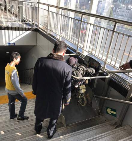 大連地鐵站殘疾人無障礙升降平臺、樓梯升降機、斜掛式輪椅升降平臺、主要為使用輪椅者提供上下樓梯的服務,其一般結構合理使用安全。為了防止平臺傾翻,使用二根導軌。斜掛式輪椅升降平臺主要由工作平臺、支承框架、保護護欄組成,主體是濟鋼結構。工作平臺是升降機的工作部分,表面復有防滑濟鋼產材料。平臺的三個外向面都安裝有安全護板,當平臺運動受阻時,能使升降機停止運動。平臺在不使用時可以向上折疊,以減少占用空間。