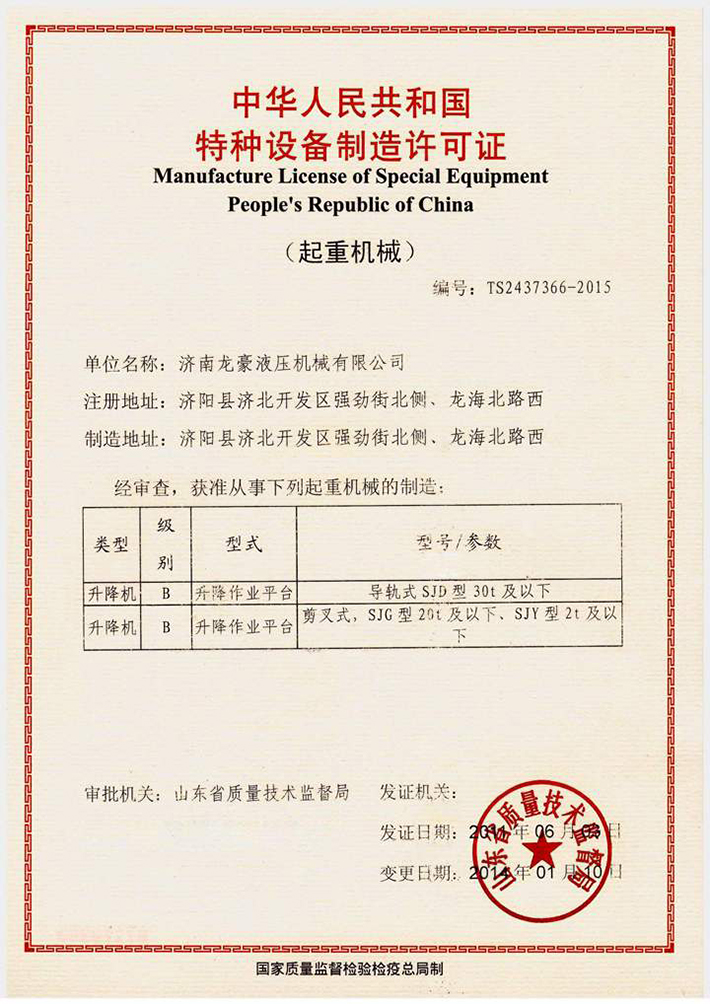 升降機(jī)、升降平臺(tái)、液壓升降機(jī)、液壓升降平臺(tái)、登車(chē)橋、非標(biāo)升降設(shè)備、大型升降機(jī)械生產(chǎn)廠家,歡迎來(lái)廠實(shí)地考察,龍豪液壓機(jī)械竭誠(chéng)為您服務(wù)!